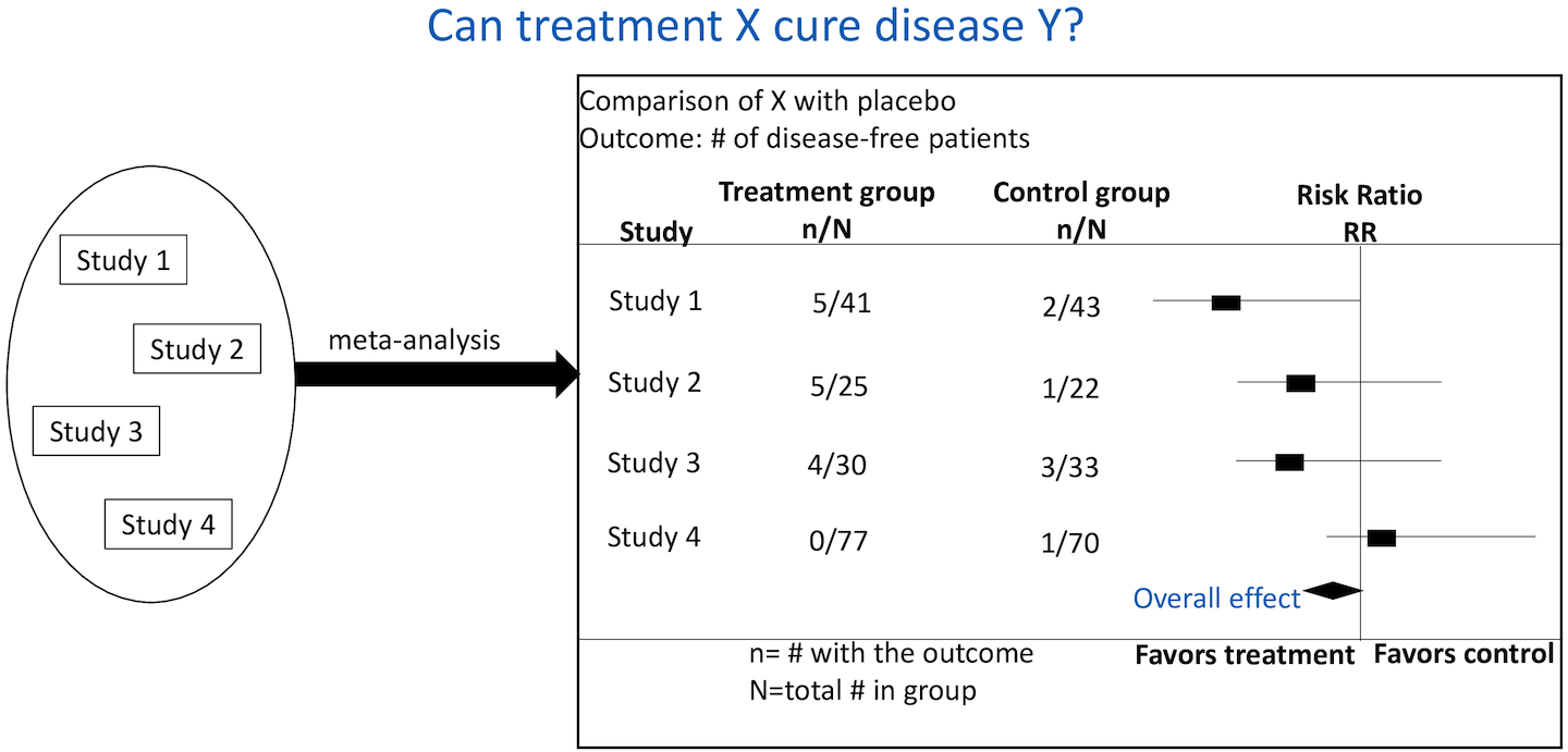 A meta-analysis is a statistical analysis that combines results of different studies that are focussed on the same disease or treatment to ascertain if a treatment is effective or not. For instance, if we want to determine if treatment X cures a certain disease/condition Y, we can (1) conduct a clinical trial, or (2) conduct a meta-analysis. Although clinical trials provide gold standard evidence, they are time consuming and expensive. Meta-analyses are therefore an alternative to clinical trials.